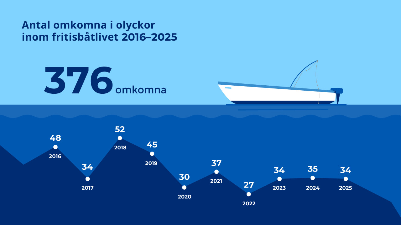 Enligt förhandsstatistiken över sjöolyckor under januari-december 2025 omkom det sammanlagt 34 personer som var ett person mindre än vid motsvarande period på 2024.